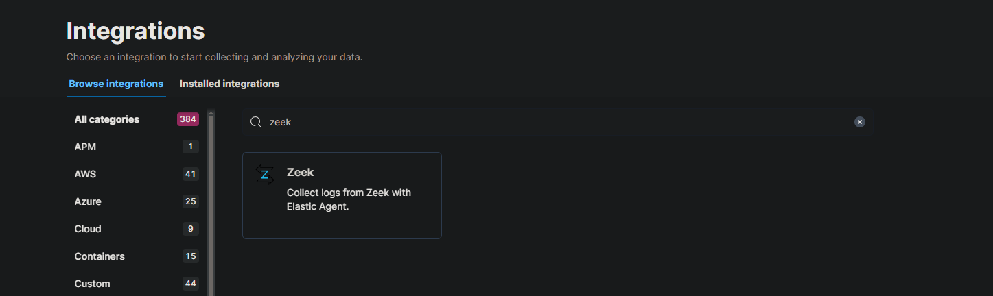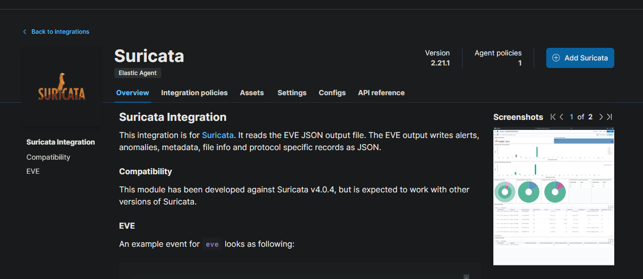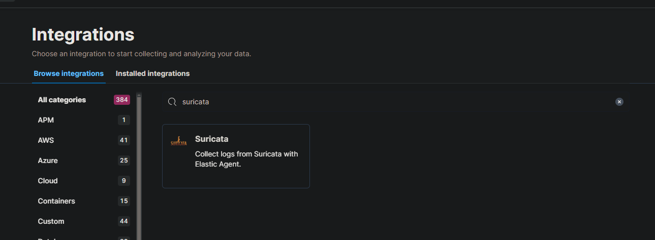 We will do the same with Suricata. Click on “Add Integration” and search for Suricata.