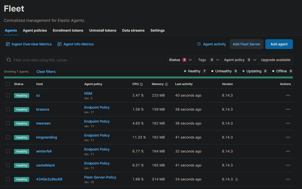 For the Elastic installation, I’ve chosen the quick setup method. By using elastic-container, we can quickly deploy a new Elastic instance, manage its policies through Fleet, and even integrate EDR into our hosts.