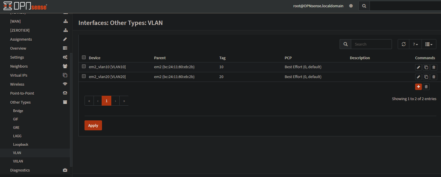 Note: Remember also to allow rule traffic in the VLAN 10 and VLAN 20 because we will need it to update and install the necessary packages during the setup ;).