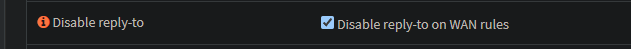 Then, go to Firewall -> Settings -> Advanced, and enable the check Disable reply-to on WAN rules.