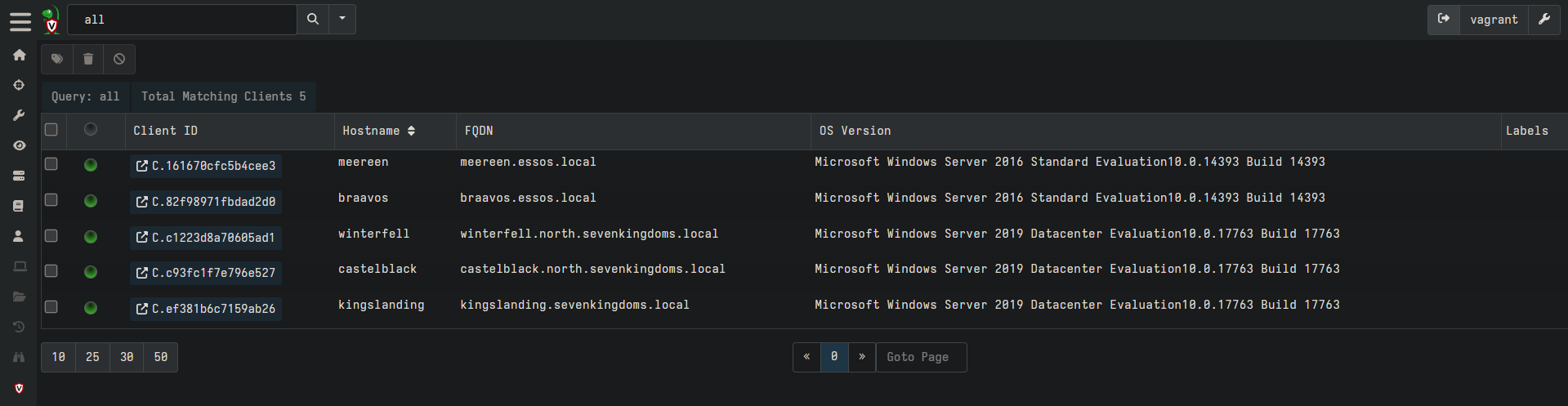 After the agents are installed, we can validate the installation by going to https://192.168.20.4:8889/app/index.html#/search/all.